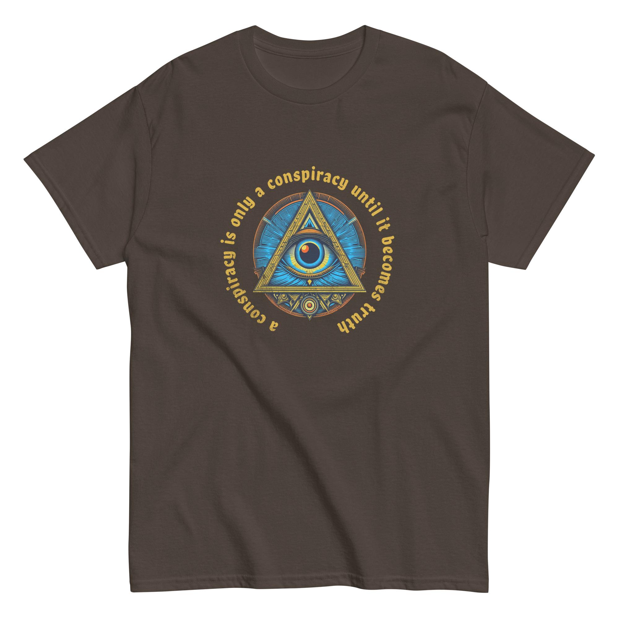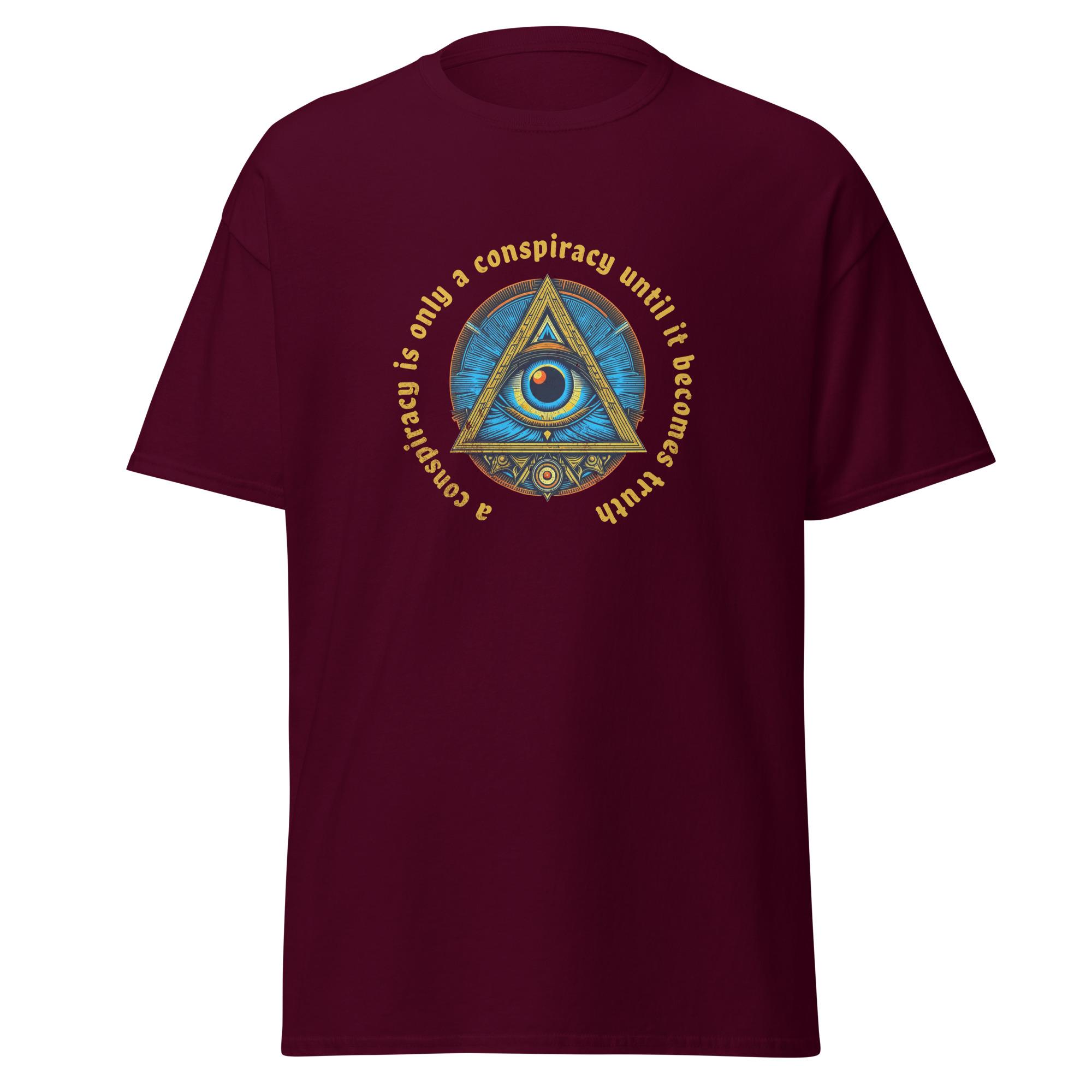 Adorned with the cryptic phrase, “A conspiracy is only a conspiracy until it becomes truth,” this t-shirt beckons you to delve into the enigmatic corners of existence. Crafted with meticulous attention to detail, each fiber weaves a narrative of concealed truths and whispered secrets. Its comfortable fabric ensures a fit that’s both relaxed and captivating.